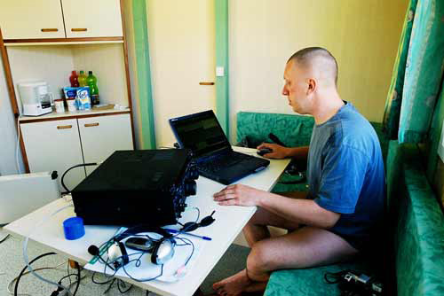 Zaczynam na 15 metrów wołając cq. Pierwszy odpowiada Marek SP4TXI, po nim pojawiają się kolejne stacje z SP, RA, UA9, JA, W. Po pierwszej godzinie mam 50 łączności, ach gdyby taka średnia utrzymała się do końca. Potem 20 metrów, całkiem nieźle idzie, momentami ekscytujący pile-up. Sporadyczne kontrole pasma 10 metrów owocują tylko siedmioma łącznościami, niestety żadnej z SP. A już miałem nadzieję, gdy zgłosiła się stacja z DL. Pięknie było na 40 metrach, wszystkie kontynenty, i nie brakowało takich atrakcyjnych znaków jak: VK, ZL, W, JA, PY, YV, VE, LU, że nie wspomnę o wszystkich województwach SP. Budujące jest, jak wiele polskich stacji spotkałem w nocy na pasmach. To było bardzo miłe uczucie, nie czułem się taki samotny. Niestety zmęczenie podróżą daje się we znaki i o 02:36z padam po qso z ZL2AMI na 20m. Upadek trwa około dwóch godzin, a podniesienie nie jest łatwe. Na poprawę samopoczucia wpływa głośne hello od tego samego ZL2AMI tym razem na 40 metrach. Po niezliczonej ilości kaw nadchodzi wreszcie 12:00z.