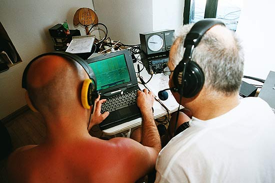 Od 1-go kwietnia 2005 weryfikacja kart do DXCC będzie wymagała dodatkowych informacji, np. jaka antena była użyta do łączności i którą drogą szła fala elektromagnetyczna. Na zdjęciu Falk DK7YY, DXCC Card Checker, przesłuchuje krótkofalowca, który dokładnie pokazuje drogę swoich fal elektromagnetycznych w łączności z Koreą Północną długą drogą (long path propagation)