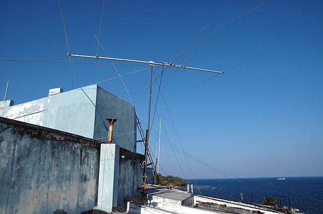 Przez następne dni zwiedzałem okolice Port Blair i sąsiednie małe wyspy. Dzień przed powrotem na kontynent pojechałem do lokalnej Politechniki, gdzie zainstalowana była stacja VU4NRO. Anteny znalazłem bez trudu, po kablach antenowych doszedłem do pomieszczenia gdzie mieściła się stacja... ale mogłem popatrzeć na nią tylko przez dziurkę od klucza bo było zamknięte a nikogo tam nie było. Czekałem godzinę ale nikt nie potrafił mi powiedzieć kiedy operatorzy, a było ich co najmniej trzech, wrócą.