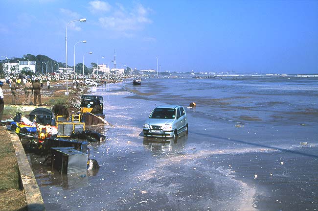 Irytujący był widok miasta Chennai z setkami policjantów ustawionych wzdłuż wielokilometrowej plaży. Zadaniem ich było nie pozwalać wchodzić na plażę "bo może przyjść następna fala". Ktoś, kto wydał taki rozkaz nie wie, że najpierw musi być trzęsienie ziemi aby powstała fala tsunami.