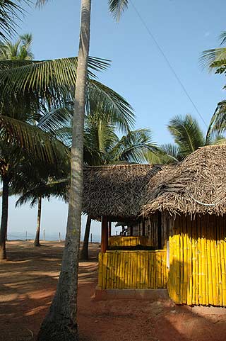 Moje QTH i antena ukośnie schodząca z palmy do bambusowej chatki w Varkala na zachodnim wybrzeżu Indii. |