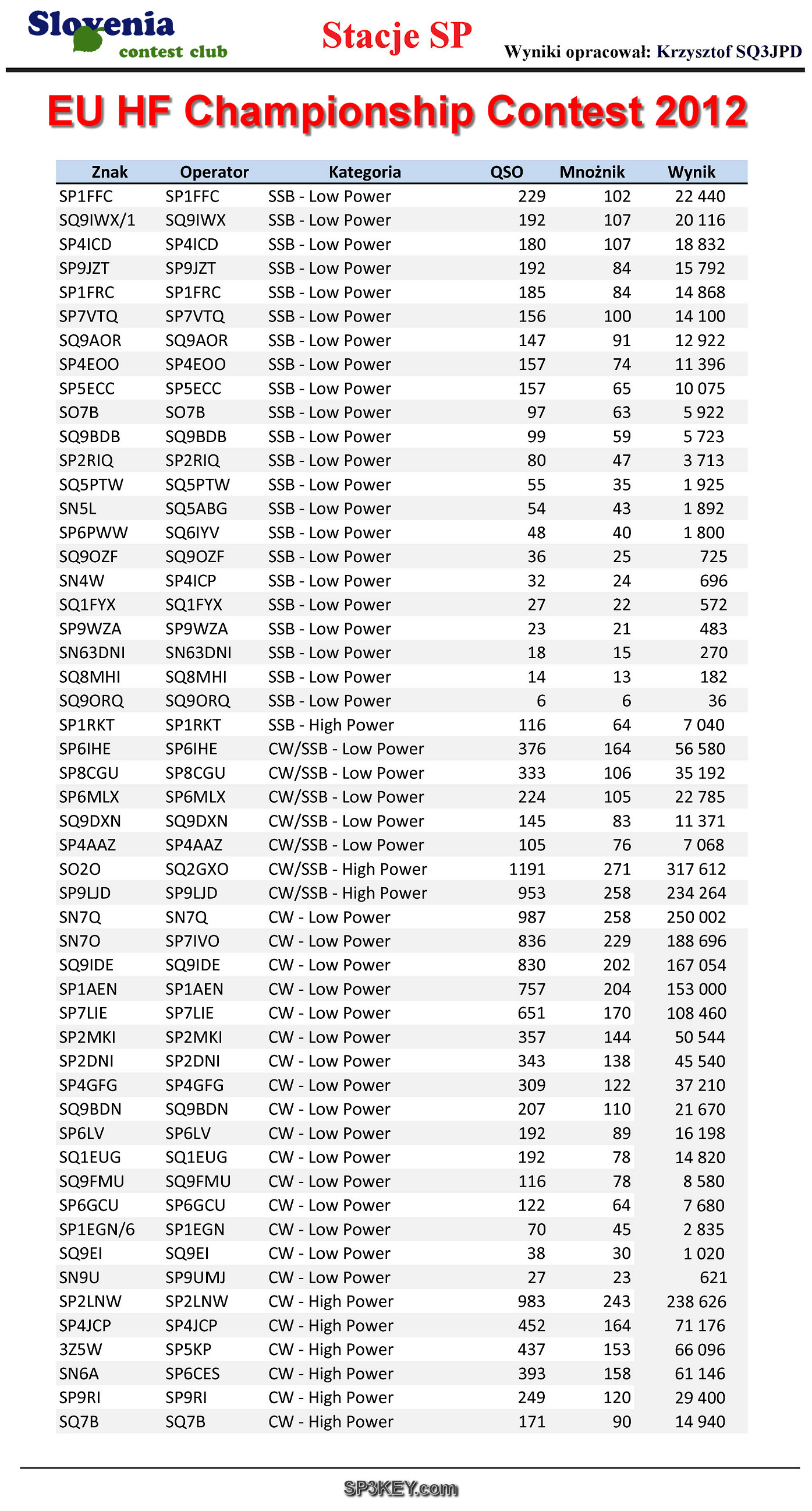 WYNIKI ZAWODÓW Z ROKU 2012