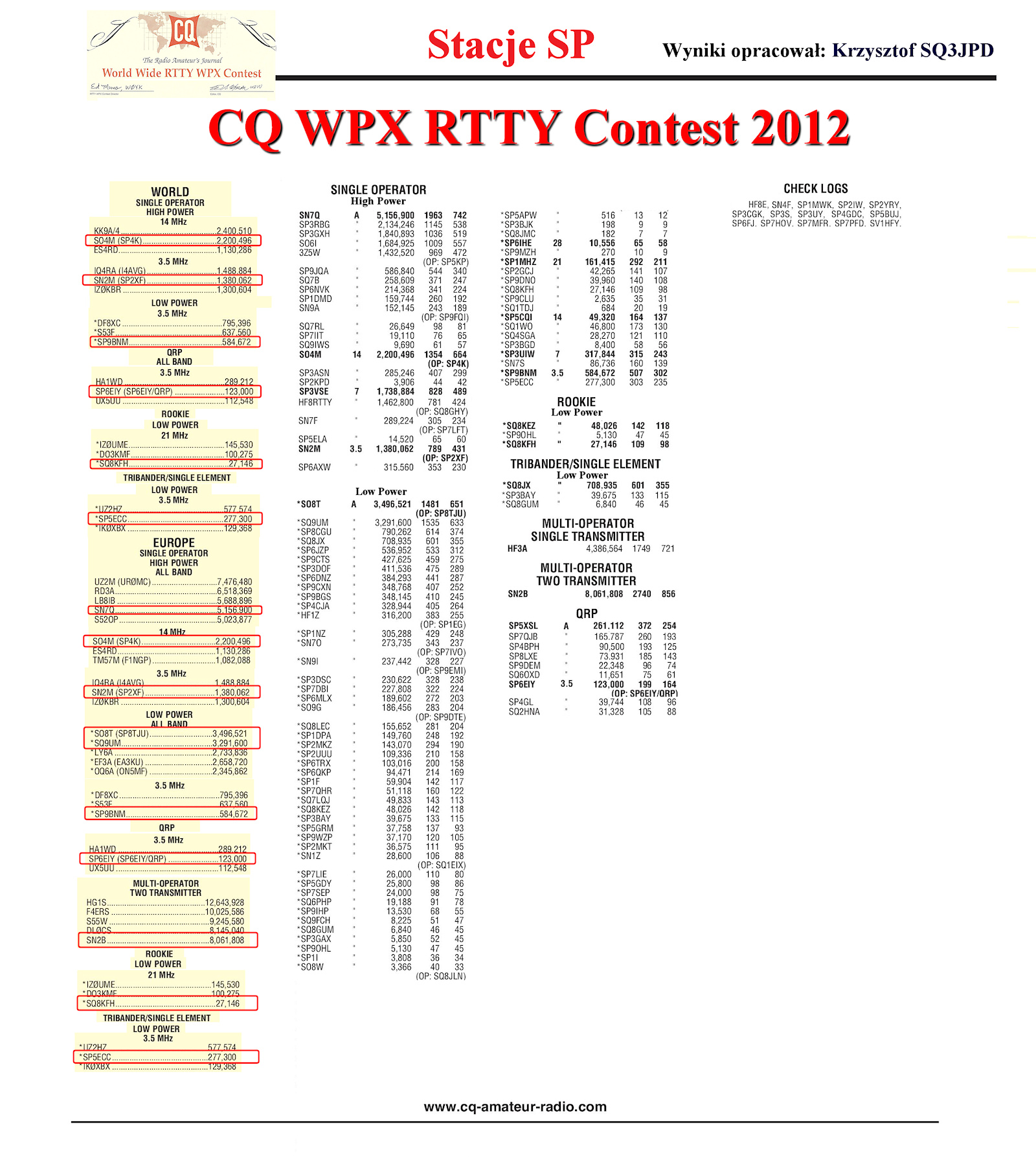 WAE DX Contest SSB | JI DX Contest CW | Russian DX Contest | CQ WW WPX RTTY