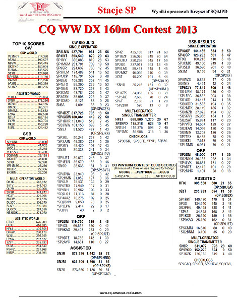 ARRL DX CW Contest | ARRL DX SSB Contest | CQ WW 160m Contest | ARRL RTTYCQ WW WPX Contest SSB | WAE DX CW Contest | WAE DX SSB Contest | SP DX RTTY