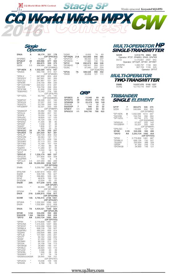 SP DX RTTY | CQ WPX RTTY | IARU HF WC | CQ WW CW | CQ WW SSB
