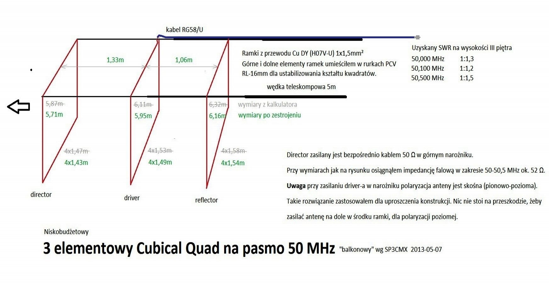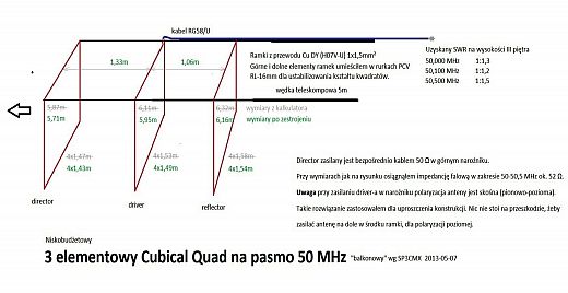 Przedstawiam niskobudżetową konstrukcję 3 elementowego Cubical Quada na 6m autorstwa Mietka SP3CMX w Gorzowa Wielkopolskiego.Przedstawiony opis konstrukcji anteny oraz zdjęcia są autorstwem Mietka.