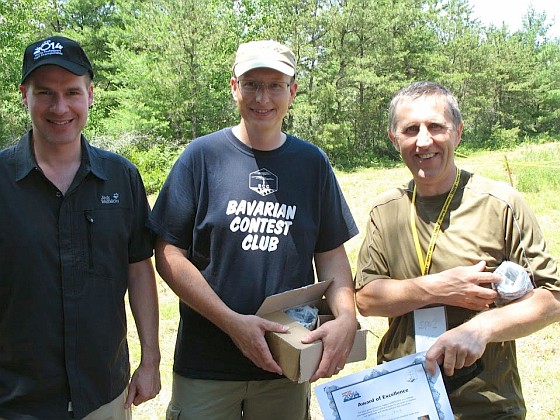 Drużyna niemiecka Manfred DJ5MW i Stefan DL1IAO, zaraz po przyjeździe wręczyła nam wszystkim czyli sędziemu, kierowcy i wolontariuszom pamiątkowe dyplomy i kubeczki klubu BCC (Baviarian Contest Club).