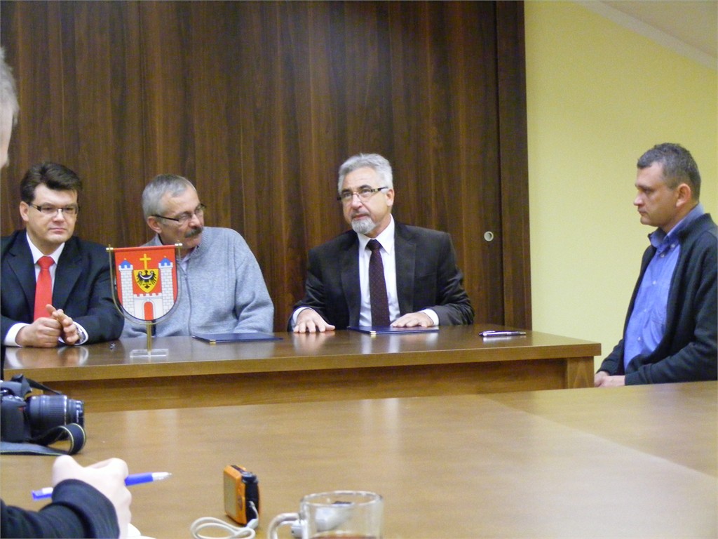 Krzysztof Rutkowski, Bogdan Chorążyk oraz burmistrz Wiesław Szkondziak po oficjalnym podpisaniu umowy. (fot. Jakub Nowak)