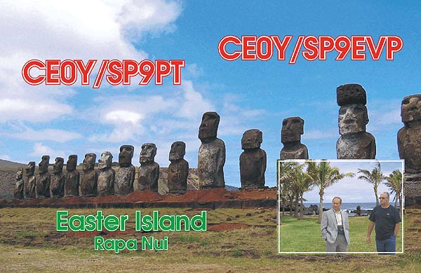 Wybraliśmy Wyspę Wielkanocną najbardziej oddalone od lądu miejsce na świecie, zwane pępkiem świata. Chociaż przed kilku laty była zorganizowana wyprawa na tą wyspę to brak stałej czynnej amatorskiej radiostacji na wyspie spowodował, iż dla wielu nadawców łączność z ta wyspą mogła stanowić atrakcję ( mieszkający tam Henry XQ0YAF z uwagi na swój wiek i problemy ze zdrowiem od kilku lat nie pracuje w eterze).