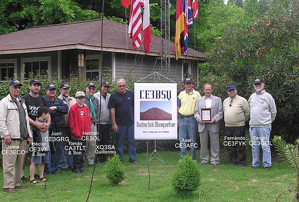 Podczas tego spotkania Prezes Związku Krótkofalowców Chile CE3FYK wręcza nam oryginalną plakietkę z wygrawerowanymi podziękowaniami za tak skuteczne uaktywnienie