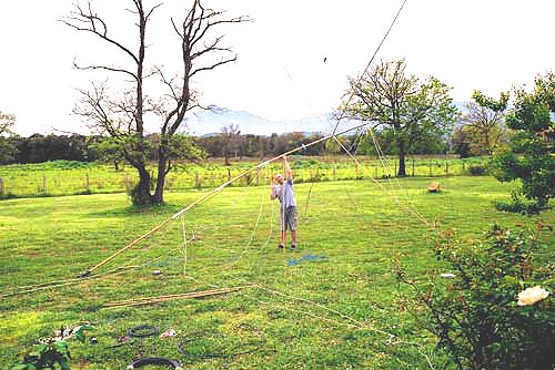 Na tym zdjęciu można wypatrzyć jeszcze dipole na 40 i 80 metrów. One dyndały zaledwie 3-3,5 metra nad ziemią.