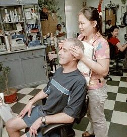 Kilka dni po moim przyjeździe zjawił się Barry VK2BJ. Barry jest Anglikiem, ex-G3PEK, ale od 12 lat mieszka koło Sydney a do Hillview Gardens przyleciał na zawody BERU. Nazwa jest niepoprawna bo obecnie zawody nazywają się Commonwealth Contest a dotyczą tylko stacji w krajach Wspólnoty Brytyjskiej. Ciekawostką, której nie potrafię wytłumaczyć jest zaliczanie Kamerunu i Mozambiku do Wspólnoty Brytyjskiej. Barry odsiedział 24 godziny przy IC756PRO i uzyskał 7000 punktów co daje mu niezłe miejsce ale nie wygraną - za daleko do Europy, Kanady i Karaibów. Następnego dnia po zawodach poszliśmy z Barry'm na piwo w miasteczku a skończyło się jego godzinną sesją masażu w salonie piękności. Na Borneo po zawodach wchodzi się w post-contest-mode (nie wiem jak to przetłumaczyć na polski) w fotelu masażystki.