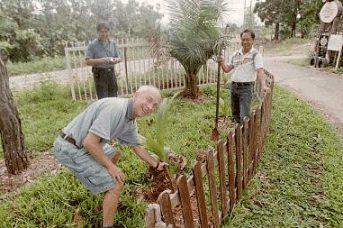 Ralf DK3GH sadzi palmę w Hillview Gardens przed wyjazdem. |