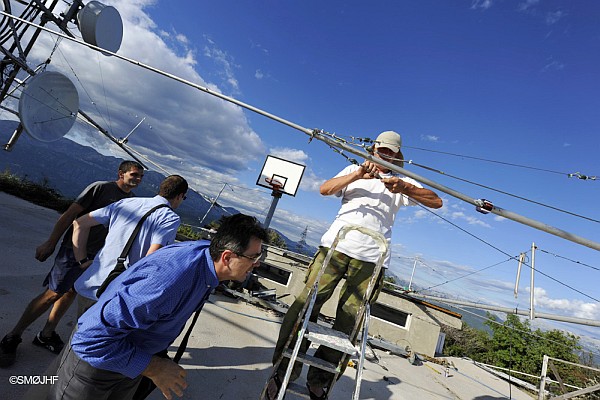Latem roku 2006 Czarnogóra odłączyła się od Serbii i ogłosiła niepodległość. Nowy podmiot DXCC otrzymał od ITU prefiks 4O. Ranko Boca, zapalony radioamator czarnogórski, zaczął używać znaku 4O3A zamiast dotychczasowego YT6A. Miał już wtedy na swoim koncie wiele dobrych wyników w dużych zawodach, a na wzgórzu, przy wejściu do zatoki Kotor, nieprzeciętną stację. ![]() Budowę stacji rozpoczął pod koniec lat dziewięćdziesiątych, gdy powrócił do domu po wojnie bałkańskiej. Na wzgórzu Obosnik istniał już wcześniej wojskowy punkt obserwacyjny, ale droga na szczyt była niezwykle ciężka dla cywilów. Przez kilka lat Ranko zajeździł na śmierć dwa samochody terenowe Land Rover. ![]() Po lewej maszty 4O3A. Po prawej instalacje wojskowo-komercyjne. Szczyt Obosnik. Wybudował obszerny budynek, postawił pierwszy maszt i rozpoczął proces, który trwa do tej pory: rozbudowa stacji i bardzo duża aktywność we wszystkich zawodach. Ranko skupił wokół siebie kilku zapaleńców i otworzył progi swojej stacji dla gości z daleka i z bliska. Ja odwiedziłem 4O3A pod koniec września roku 2013. Trafiłem na prace antenowo-kablowe. Sprzęt nadawczy był przykryty, żeby pył powstający przy robieniu otworów w ścianie nie niszczył delikatnych urządzeń. Jedno stanowisko nadawcze było czynne i YL Sneżana, 4O4W, brała udział w zawodach SAC CW. Kilka osób pracowało przy kierunkowej antenie na 7 MHz. W pewnym momencie nadleciał mały helikopter i wylądował obok stacji. To Ranko skraca sobie czas dojazdu na szczyt. Mnie zabrało to około 40 minut, choć odległości są niewielkie, droga jednak nadal jest trudna i kręta, a szczyt ma wysokość niemal 600 metrów nad poziomem morza. ![]() Budynek i anteny 4O3A. Ranko, 4O3A, ma dziś 53 lata i jest inżynierem o specjalności telekomunikacyjnej. Od lat prowadzi własną firmę produkującą profesjonalne urządzenia, a także przydatne dla radioamatorów filtry, przełączniki antenowe, sterowniki. Zainteresował się radioamatorstwem w wieku 15 lat i oczywiście działał w lokalnym klubie. Własny znak otrzymał dopiero w roku 1980. ![]() Widok na Zatokę Kotorską ze stacji 4O3A, element nowej anteny na 7 MHz na pierwszym planie. Wszystkie łączności zrobione pod znakiem 4O3A są zarejestrowane w Log of The World, a jest ich ponad 550 tysięcy. Bardzo często operatorami w zawodach są goście, poza tym na stacji zawsze mieszka jeden operator. Budynek jest obszerny, wyposażony w ogromne zapasy wody i własny generator na wypadek przerwy w dostawie prądu. Klimat jest łagodny, ale problemem są częste wyładowania atmosferyczne oraz silne wiatry w okresie zimowym. Wyjątkowe miejsce stworzone przez wyjątkowego człowieka. ![]() Ranko, 4O3A, dogląda prac przy kolejnej antenie na 7 MHz. Bore, 4O6Z, na drabinie montuje ostatnie elementy anteny. ![]() Na szczycie wielkiego masztu stałego jest wielopasmowa antena używana do wyszukiwania mnożników w zawodach. ![]() Trzy obrotowe maszty na stacji 4O3A. ![]() Widok anten z dołu. Po lewej 2 zestawy 4-Square na 160 i 80 metrów. ![]() Od lewej: Bore, 4O6Z, Bojan, technik, Ranko, 4O3A, Sneżana, 4O4W oraz Dragan, 4O4A, w jednym z pomieszczeń stacji 4O3A. ![]() Ranko, 4O3A, pilotuje mały helikopter. |