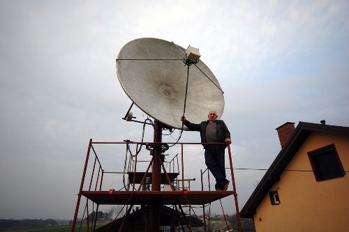 Parabola w Przybyszycach - głowicę zakłada się tylko przed nadawaniem |