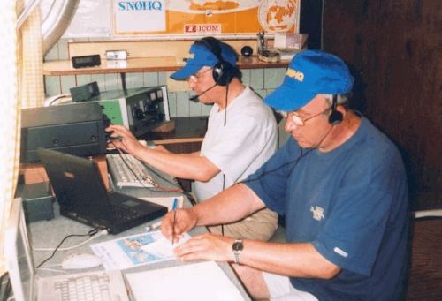 SP6DNS na pierwszym planie oraz SP6CZ w czasie zawodów. |