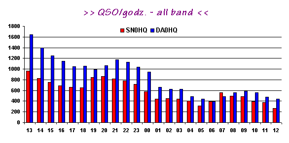 SN0HQ QSO: 1071 /CW: 538, SSB: 533/ QSO z SP: 398, QSO z DL: 40 DA0HQ QSO: 1899 /CW: 897, SSB: 1002/ QSO z DL: 1177, QSO z SP: 31