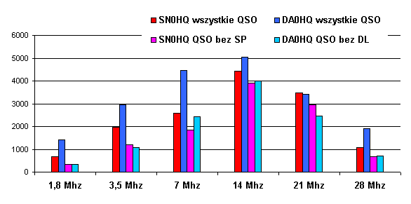 SN0HQ QSO: 1969 /CW: 955, SSB: 1014/ QSO Z SP: 778, QSO z DL: 253 DA0HQ QSO: 2954 /CW: 1402, SSB: 1552/ QSO z DL: 1891, QSO z SP: 103
