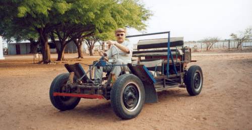 Na drugi dzień zanim słońce zaczęło dokuczać rozwieszona jest delta i ustawiona jest antena na 6m. Sprawdzam 6m w godzinach .dopołudniowych wszystkie kierunki martwe, poziom zakłóceń atmosferycznych wysoki, na KF również. Rainer zaprasza nas na wycieczkę po buszu , podstawiony jest wspaniały Ford z roku 1950, 2,5 godziny trwa objazd jego farmy 5 tys.ha, cierniste krzaki , niskie drzewa, białe wapienne kamienie i czerwony piasek od czasu do czasu dzikie zwierzę.
