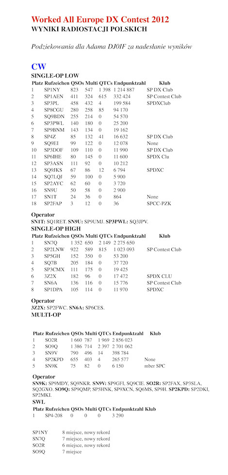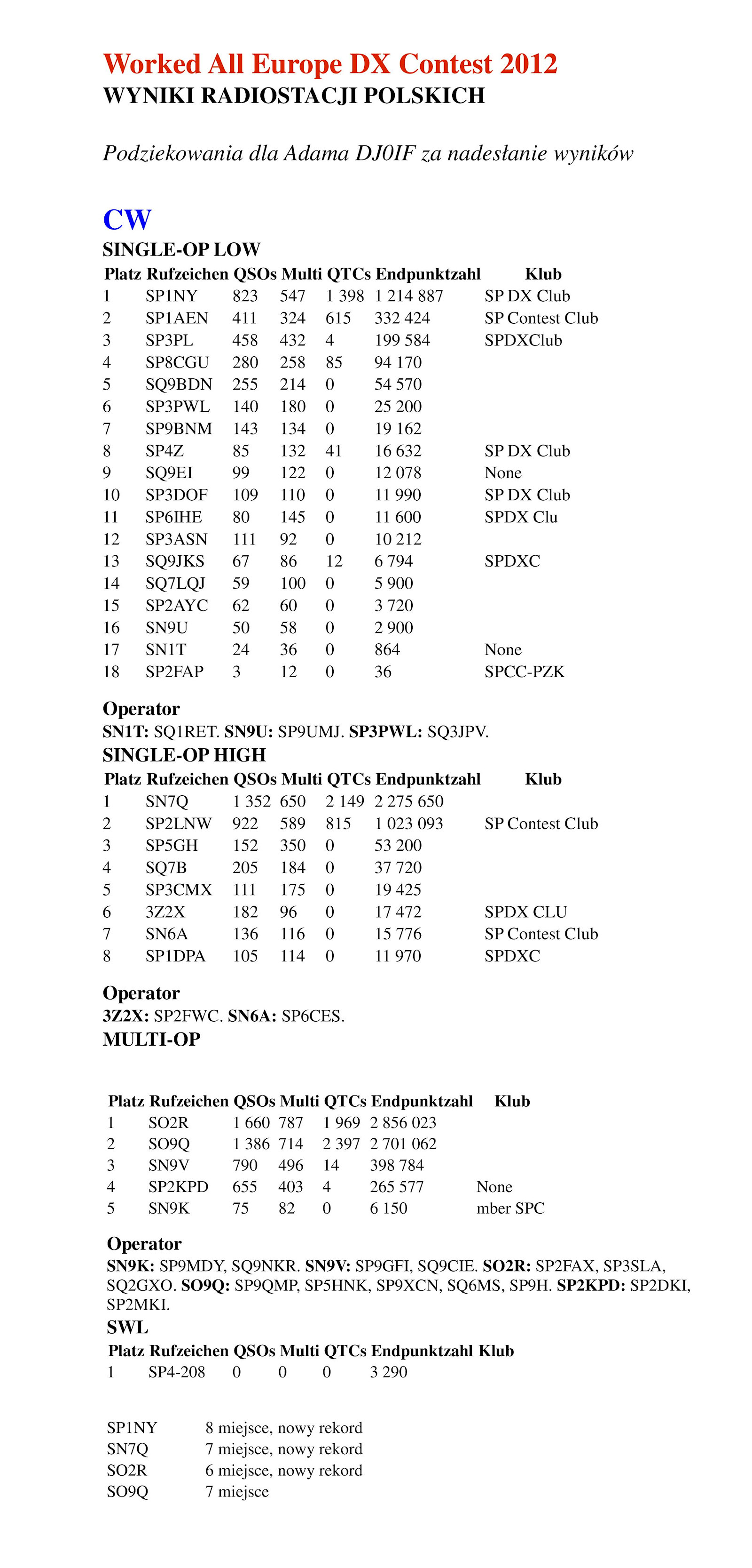 WAE DX Contest SSB | JI DX Contest CW | Russian DX Contest | CQ WW WPX RTTY