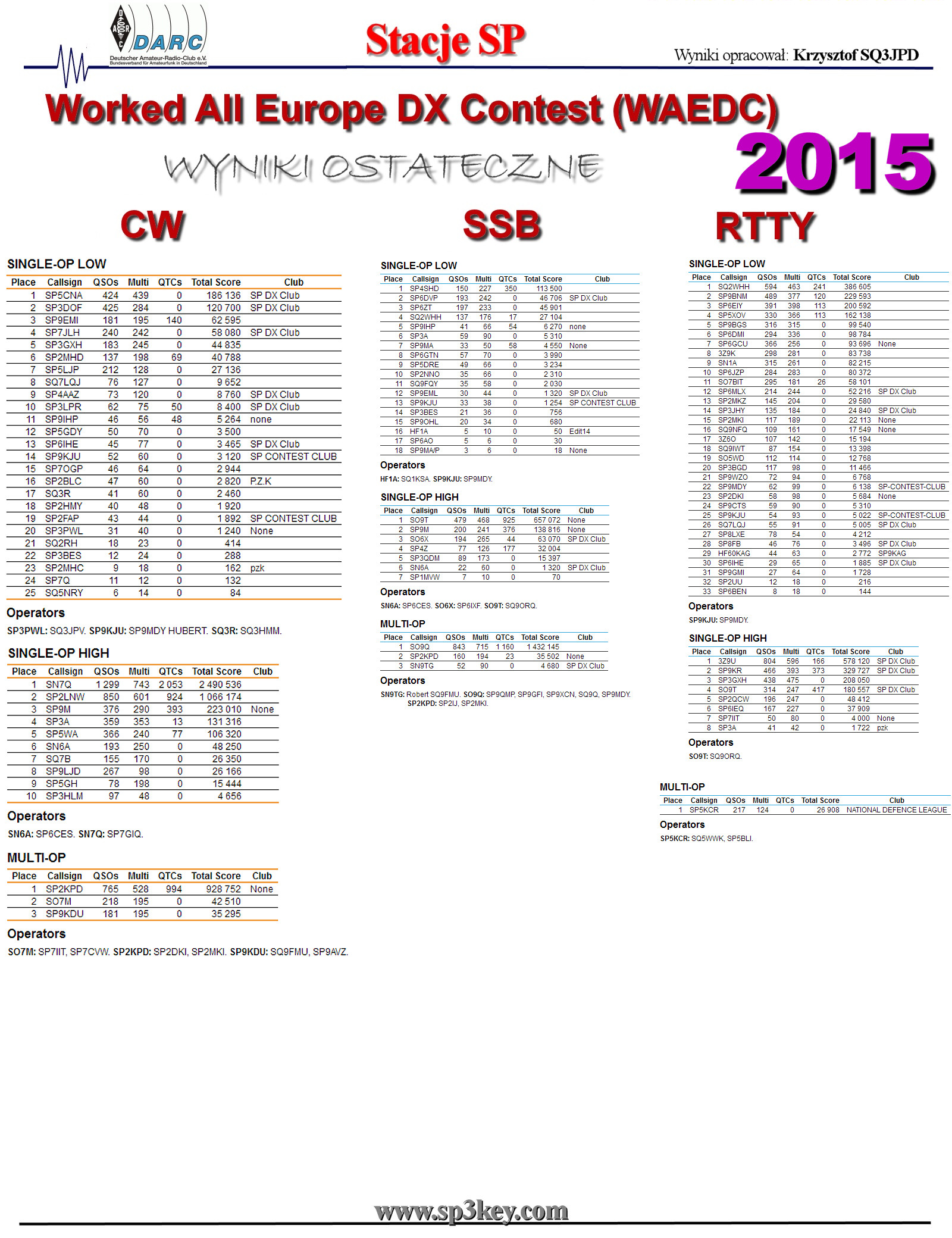 WAE DX RTTY | SP DX RTTY | All Asian | ARRL 10M | Oceania DX