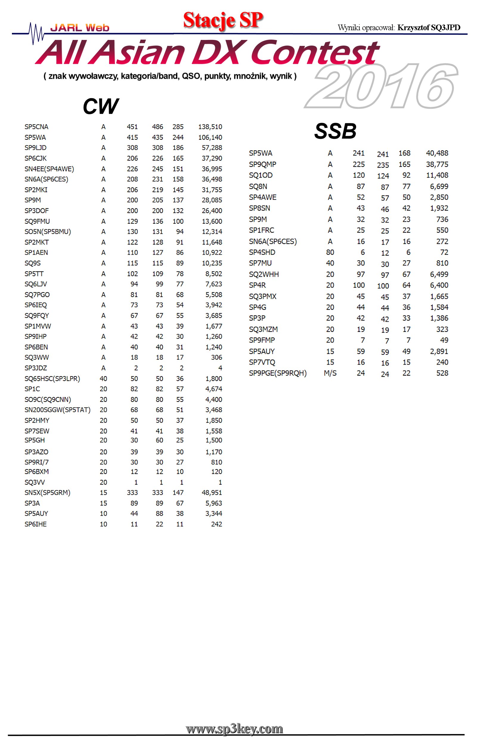 SP DX RTTY | CQ WPX RTTY | IARU HF WC | CQ WW CW | CQ WW SSB